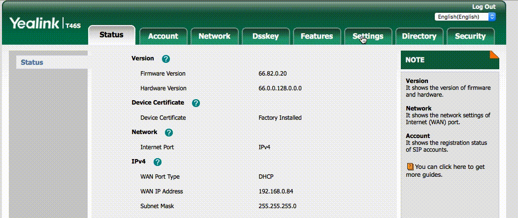 If however, the phone was not purchased through VentureTel or our partners, then you will need to manually configure the provisioning URL.